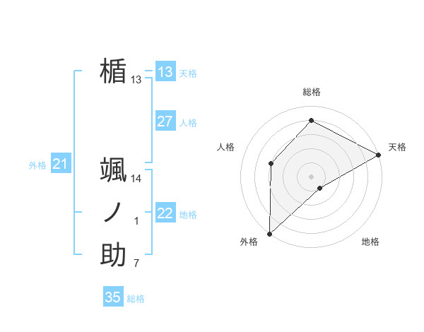 楯 颯ノ助さんの天格は13画の5点!