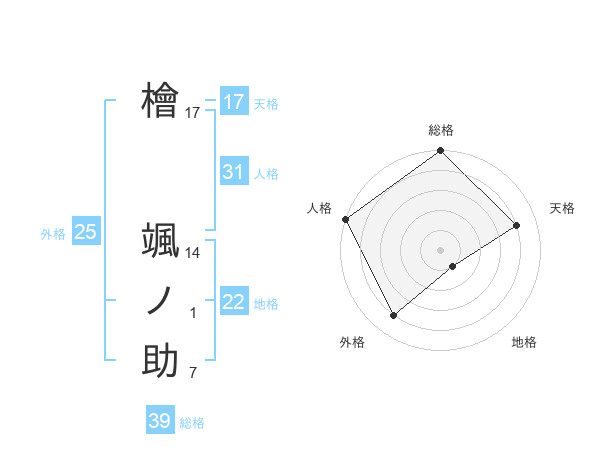 檜 颯ノ助さんを姓名の画数から五運を鑑定