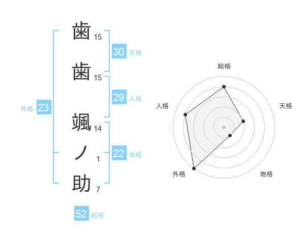 歯歯 颯ノ助さんを姓名の画数から五運を鑑定