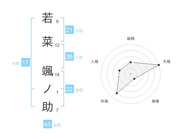 若菜 颯ノ助さんを姓名の画数から五運を鑑定