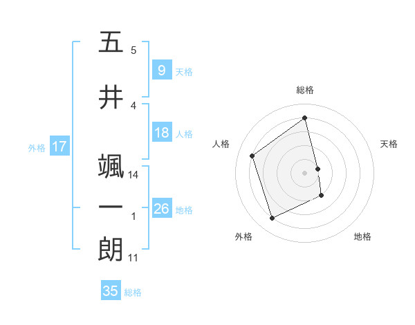 五井 颯一朗さんの総格は35画の4点!