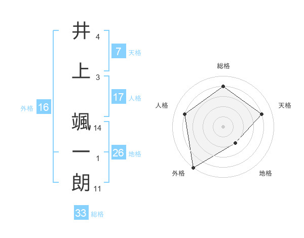 井上 颯一朗さんを姓名の画数から五運を鑑定