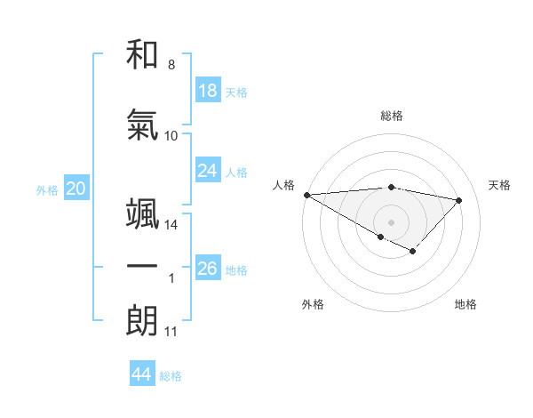 和氣 颯一朗さんを姓名の画数から五運を鑑定