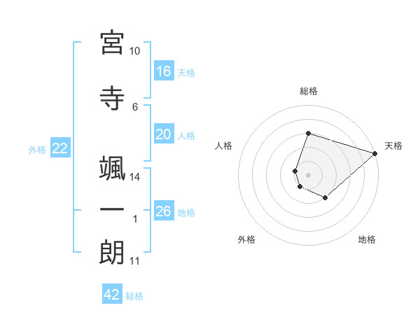 宮寺 颯一朗さんの総格は42画の3点!