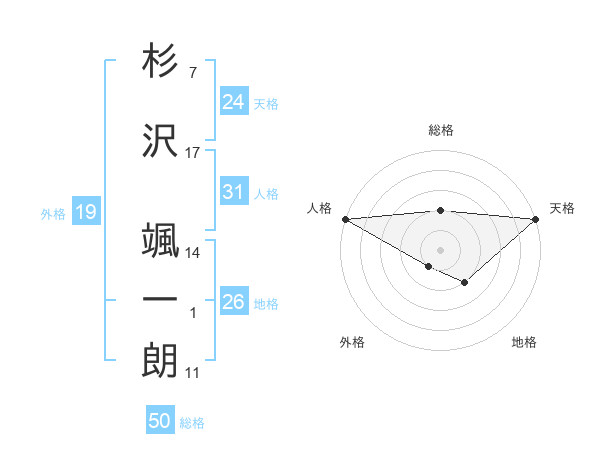 杉沢 颯一朗さんを姓名の画数から五運を鑑定