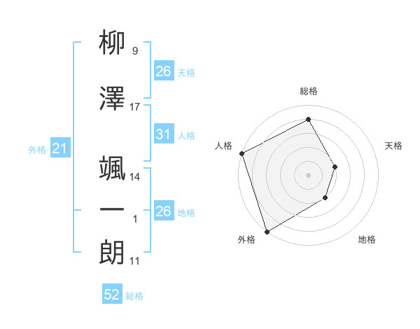 柳澤 颯一朗さんを姓名の画数から五運を鑑定
