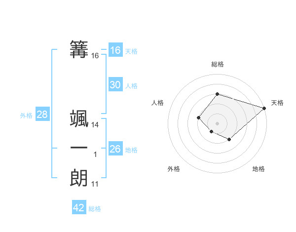 篝 颯一朗さんの天格は16画の5点!