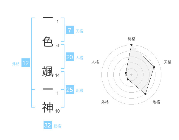 一色 颯一神さんを姓名の画数から五運を鑑定