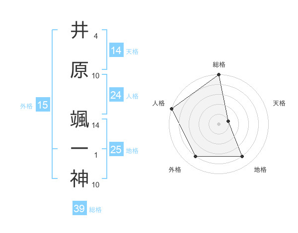 井原 颯一神さんの総格は39画の5点!