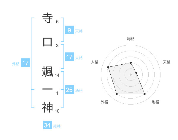 寺口 颯一神さんの外格は17画の4点!