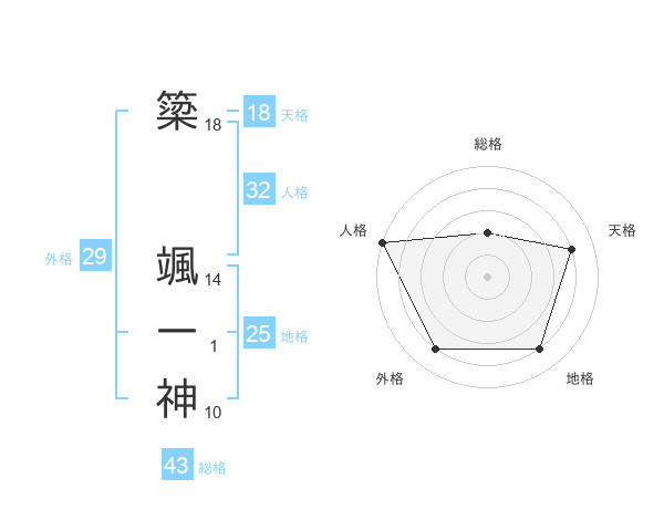 簗 颯一神さんを姓名の画数から五運を鑑定