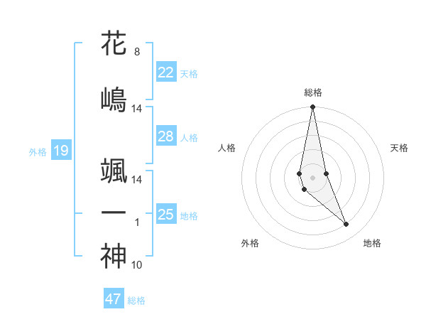 花嶋 颯一神さんの総格は47画の5点!