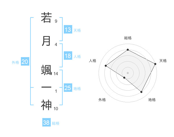 若月 颯一神さんを姓名の画数から五運を鑑定