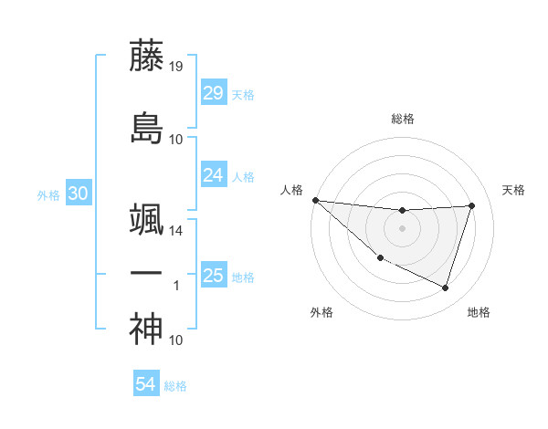 藤島 颯一神さんを姓名の画数から五運を鑑定