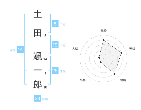 土田 颯一郎さんを姓名の画数から五運を鑑定