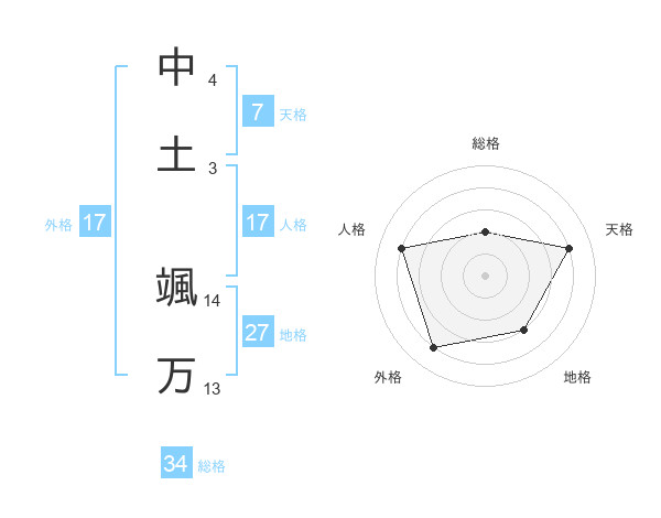 中土 颯万さんを姓名の画数から五運を鑑定
