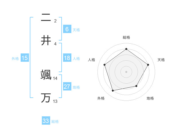 二井 颯万さんの総格は33画の4点!