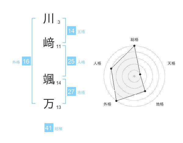 川﨑 颯万さんを姓名の画数から五運を鑑定