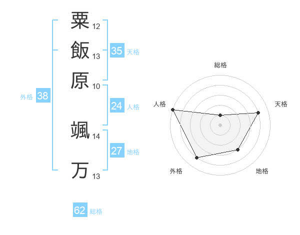 粟飯原 颯万さんを姓名の画数から五運を鑑定