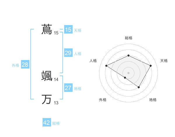 蔦 颯万さんを姓名の画数から五運を鑑定