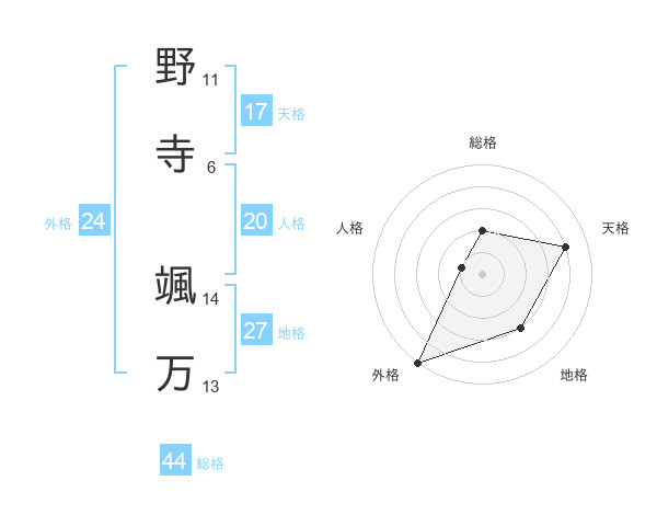 野寺 颯万さんの天格は17画の4点!