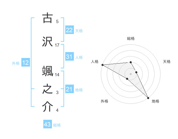 古沢 颯之介さんを姓名の画数から五運を鑑定
