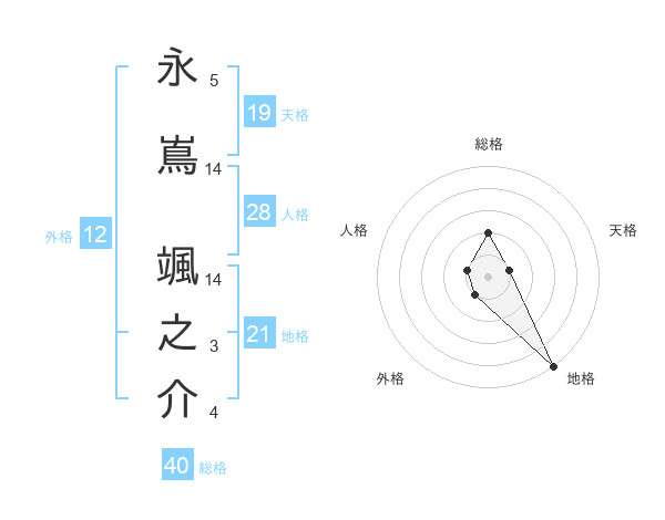 永嶌 颯之介さんの総格は40画の2点!