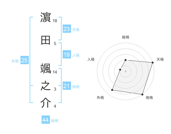 濵田 颯之介さんの地格は21画の5点!