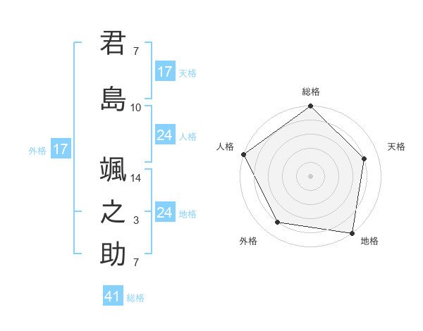 君島 颯之助さんを姓名の画数から五運を鑑定