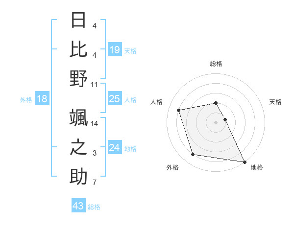 日比野 颯之助さんを姓名の画数から五運を鑑定