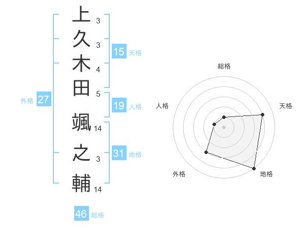 上久木田 颯之輔さんを姓名の画数から五運を鑑定