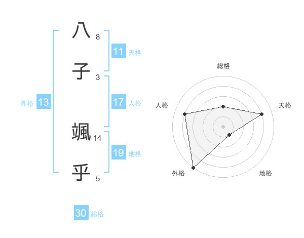 八子 颯乎さんの外格は13画の5点!