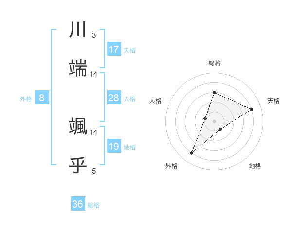 川端 颯乎さんの天格は17画の4点!