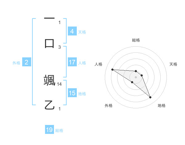 一口 颯乙さんの総格は19画の1点!