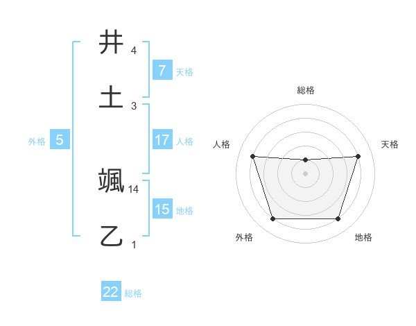 井土 颯乙さんの総格は22画の1点!