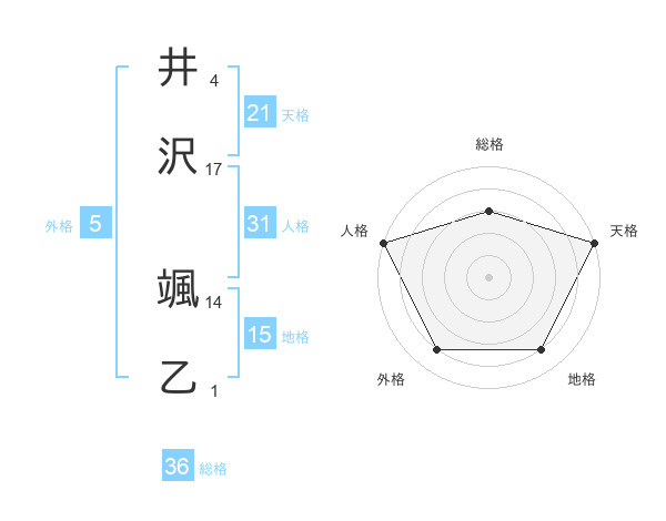 井沢 颯乙さんの天格は21画の5点!