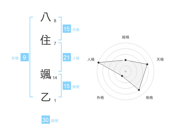 八住 颯乙さんの総格は30画の2点!