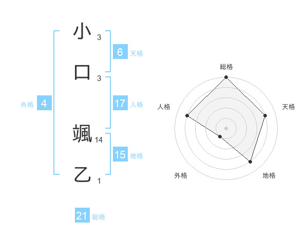 小口 颯乙さんの総格は21画の5点!