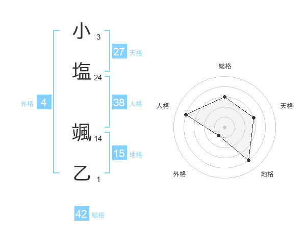 小塩 颯乙さんの総格は42画の3点!