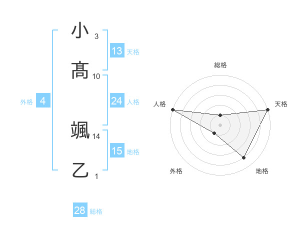 小髙 颯乙さんを姓名の画数から五運を鑑定