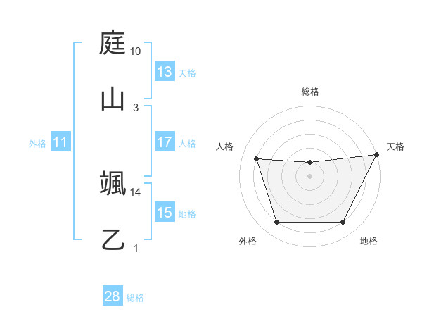庭山 颯乙さんを姓名の画数から五運を鑑定