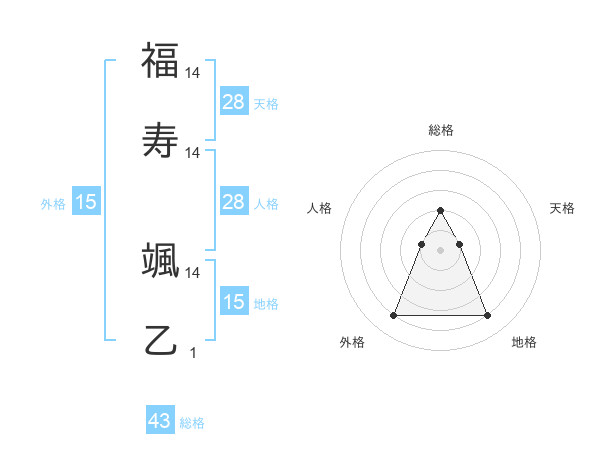 福寿 颯乙さんの総格は43画の2点!