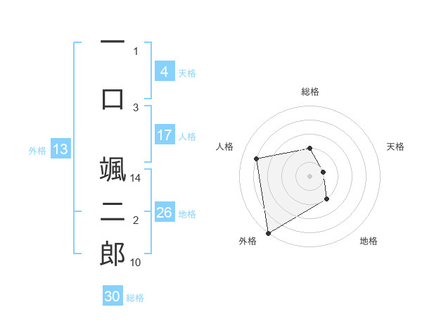一口 颯二郎さんを姓名の画数から五運を鑑定