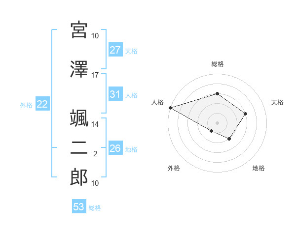 宮澤 颯二郎さんを姓名の画数から五運を鑑定