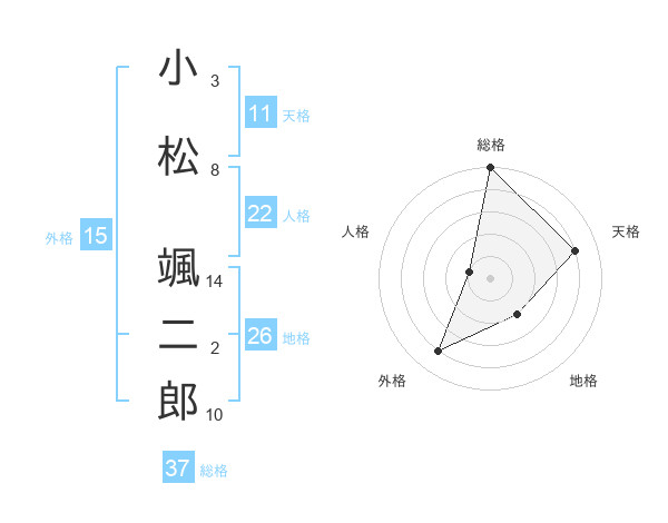 小松 颯二郎さんを姓名の画数から五運を鑑定
