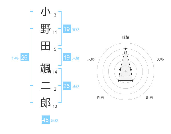 小野田 颯二郎さんを姓名の画数から五運を鑑定