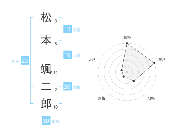 松本 颯二郎さんを姓名の画数から五運を鑑定