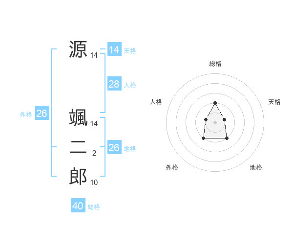 源 颯二郎さんの総格は40画の2点!