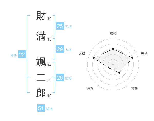 財満 颯二郎さんを姓名の画数から五運を鑑定