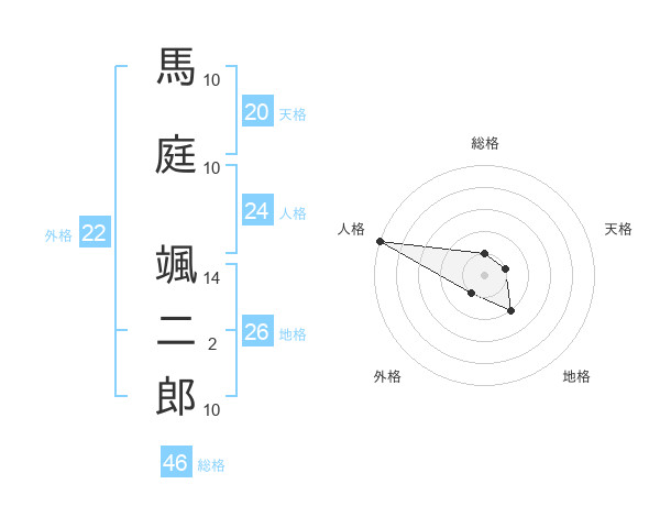 馬庭 颯二郎さんを姓名の画数から五運を鑑定